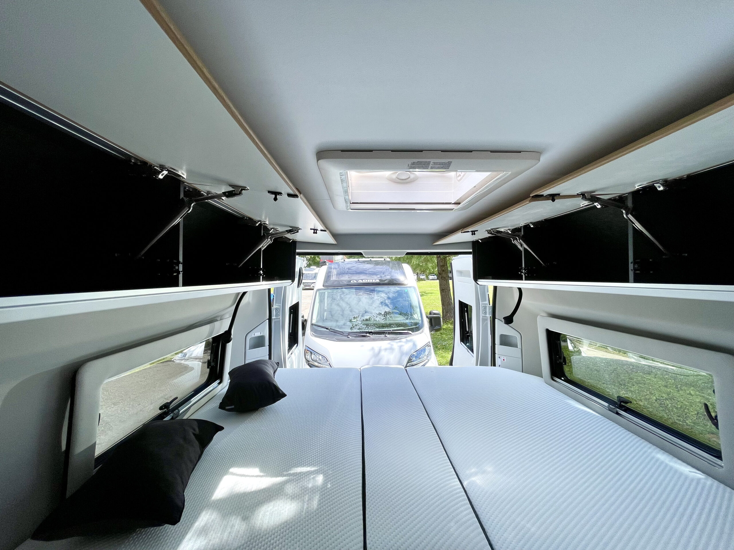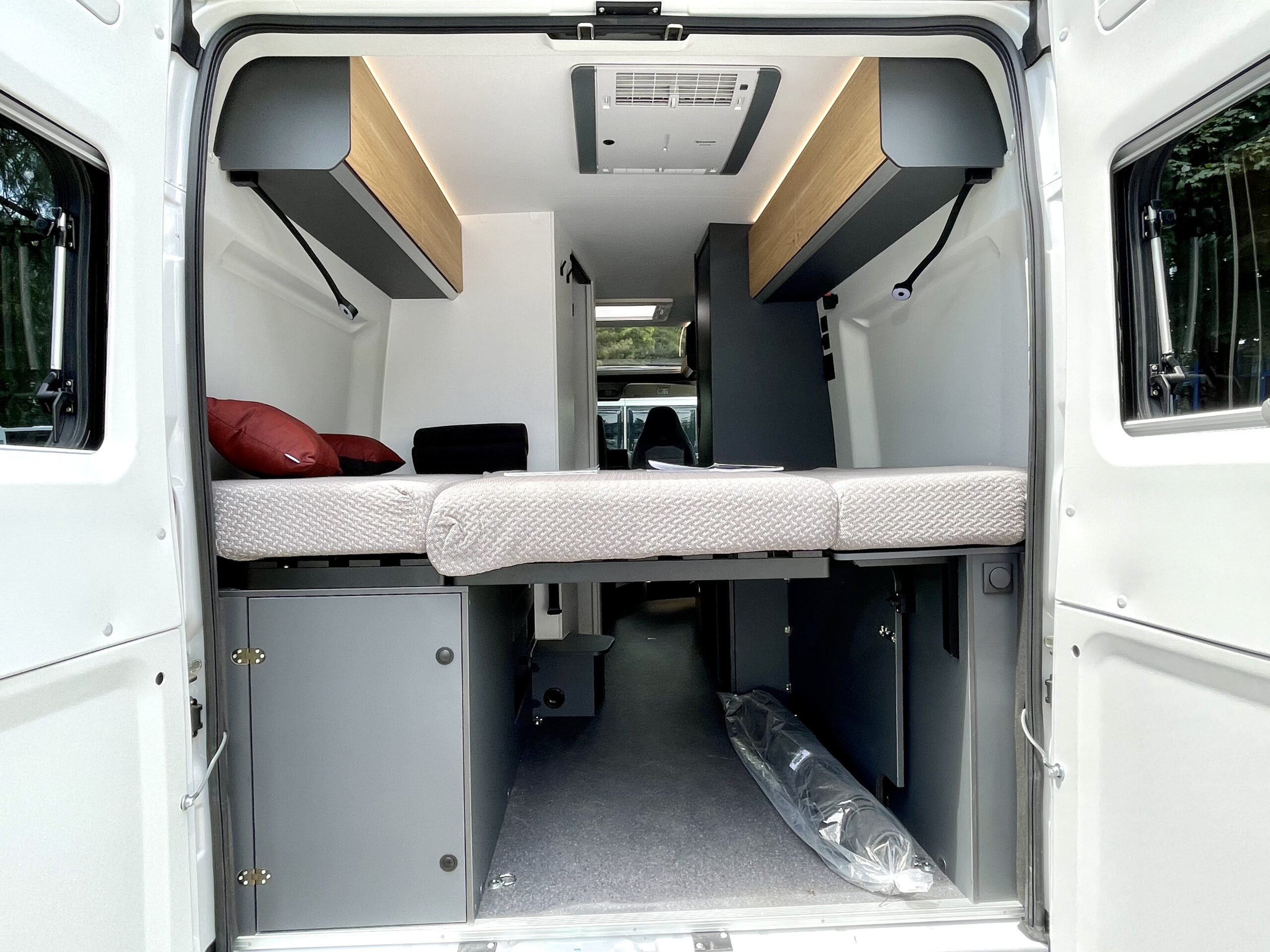 - A double bed in the rear and the possibility of converting the dining area into an extra sleeping area allow up to 3 people to travel comfortably.