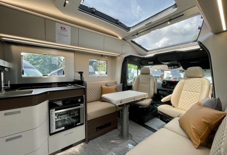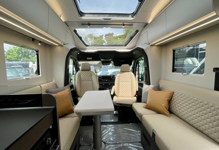 - Optional equipment: 16″ ALU wheels, LED corner lighting, reversing camera, solar panels, extra battery space, carpets in the living area and cab, MB LUXURY PACK with larger fuel tank and high-end trim.