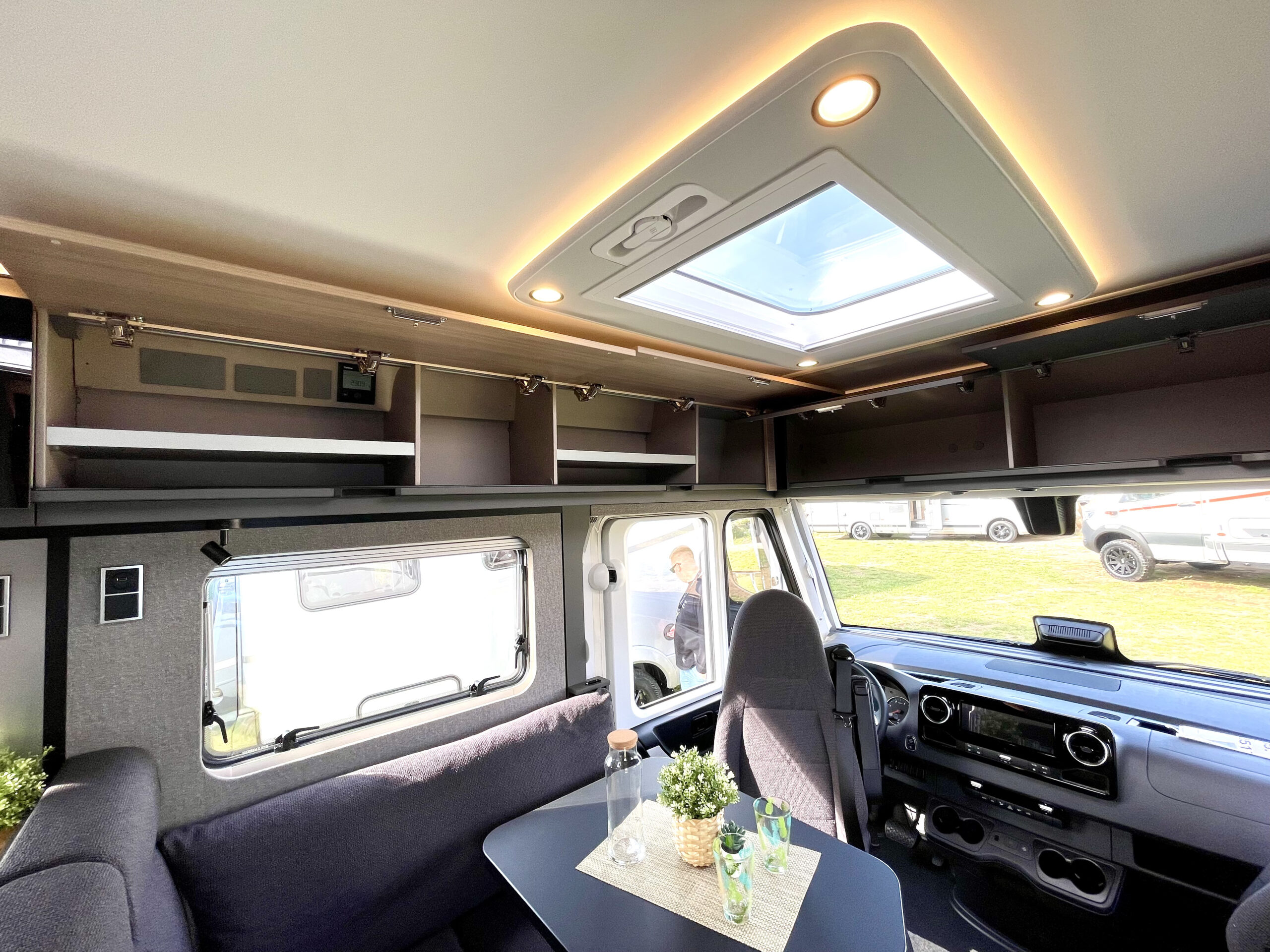 - Panoramic skylight in living area, 80×50, double glazed with LED lighting.