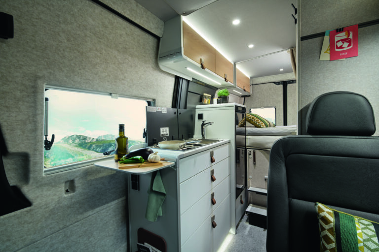 Despite its compact dimensions, the HYMER Grand Canyon S 600 offers a spacious and functional interior that is ideal for both short trips and long journeys. A comfortable sleeping area, a cleverly designed kitchen and a spacious bathroom ensure that you always feel at home.