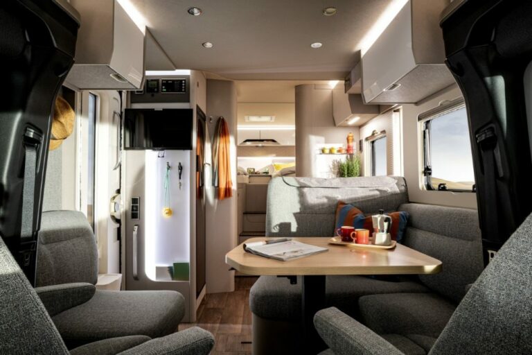 The HYMER T-Class S 680 offers a spacious and functional interior designed for your comfort. The comfortable sleeping area, well-equipped kitchen and spacious bathroom make you feel at home no matter where you are. Clever use of space ensures that you have plenty of room to relax and enjoy your trip.