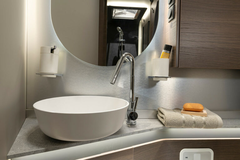 Super Sonic 780 DC equipped with the latest technology to help you travel safely and comfortably. The Mercedes-Benz MB 417 OM654 engine with 9G-TRONIC automatic transmission ensures a smooth ride, while front-wheel drive provides extra stability on the road. The integrated Alde heating system, heated water tank and modern water supply system ensure comfort in all weather conditions.