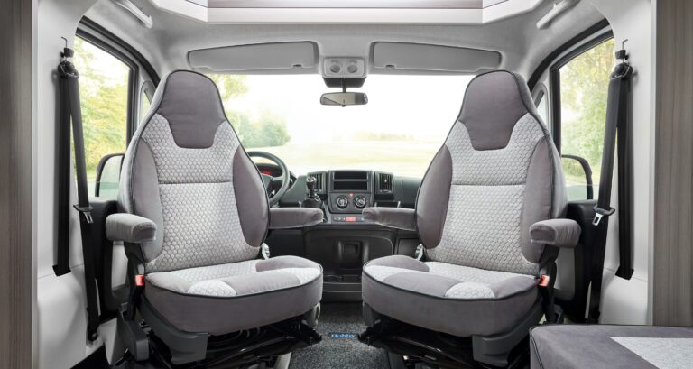 - Vairuotojo ir keleivio sėdynės su porankiais „Kapitono kėdė”, reguliuojamo aukščio