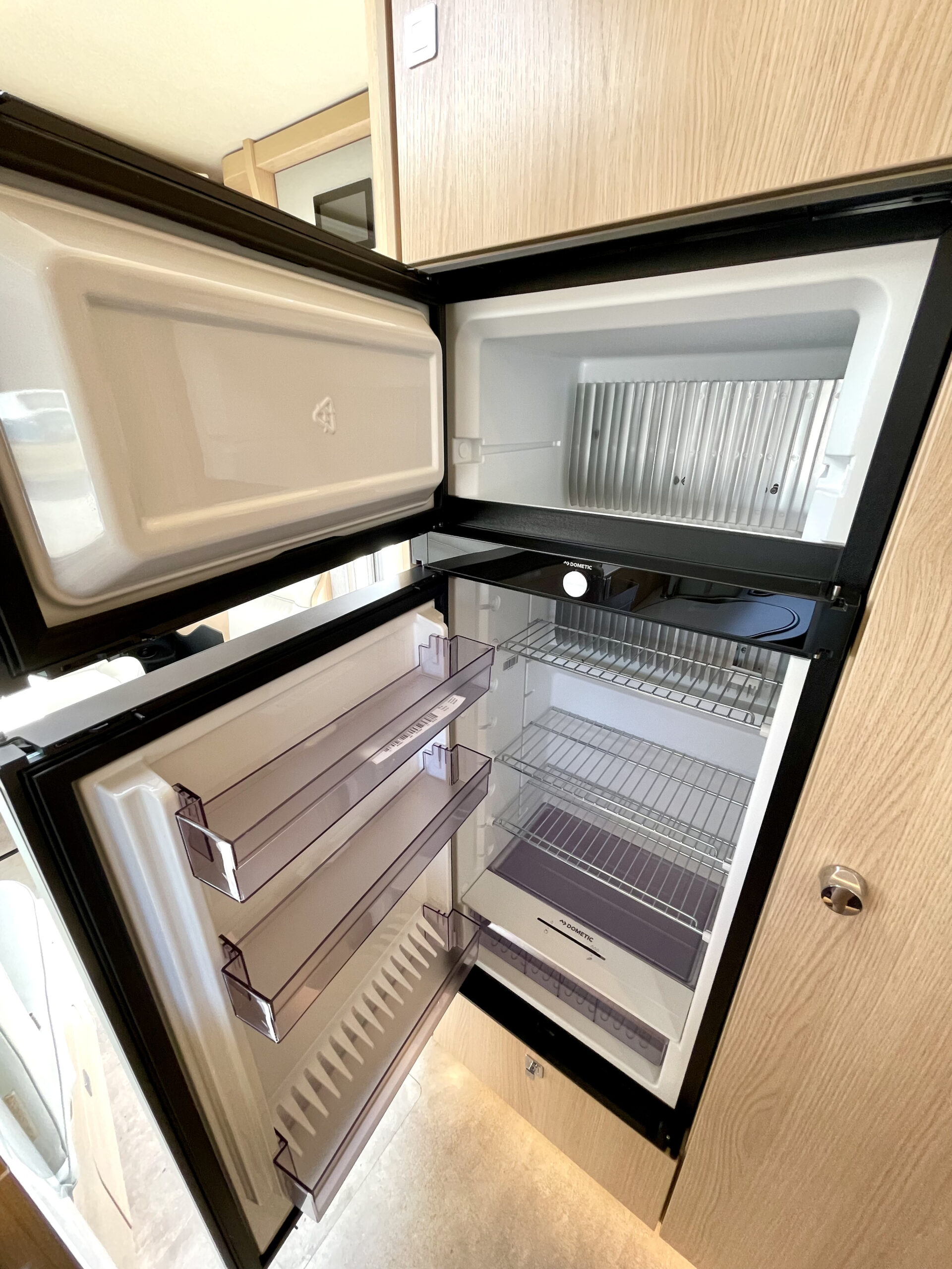 Talpus 153 l šaldytuvas su vieta šaldikliui – puikus sprendimas ilgesniam gyvenimui ant ratų.