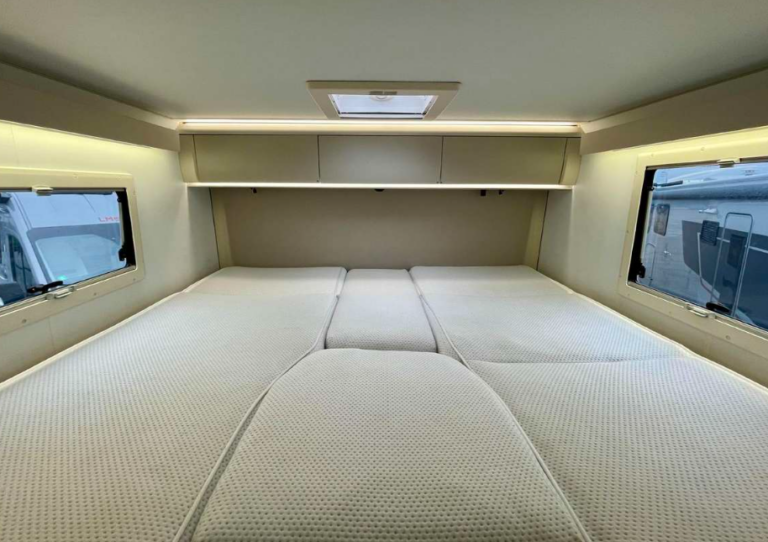 - Miegamoji zona: el. nuleidžiama lova priekyje, lovos su grotelėmis ir aukštos kokybės „Luxe“ čiužiniais.