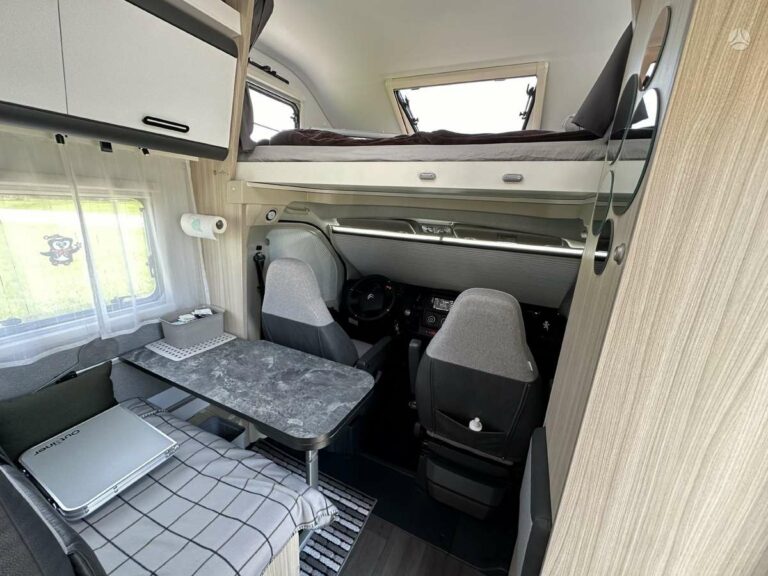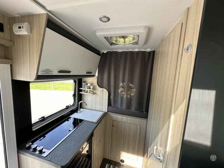 Modernus ir funkcionalus interjeras: interjeras su NABUCCO CHERRY dekoru ir ALASKA WHITE spintelių durimis suteikia elegantišką ir jaukų gyvenamąjį plotą. Virtuvė su 3 degiklių dujine virykle ir 100 litrų šaldytuvu leidžia lengvai gaminti maistą kelionėje. Cheminis WC ir atskira dušo kabina su tvirta durimis užtikrina, kad turėsite visus patogumus, nepriklausomai nuo jūsų kelionės tikslo.