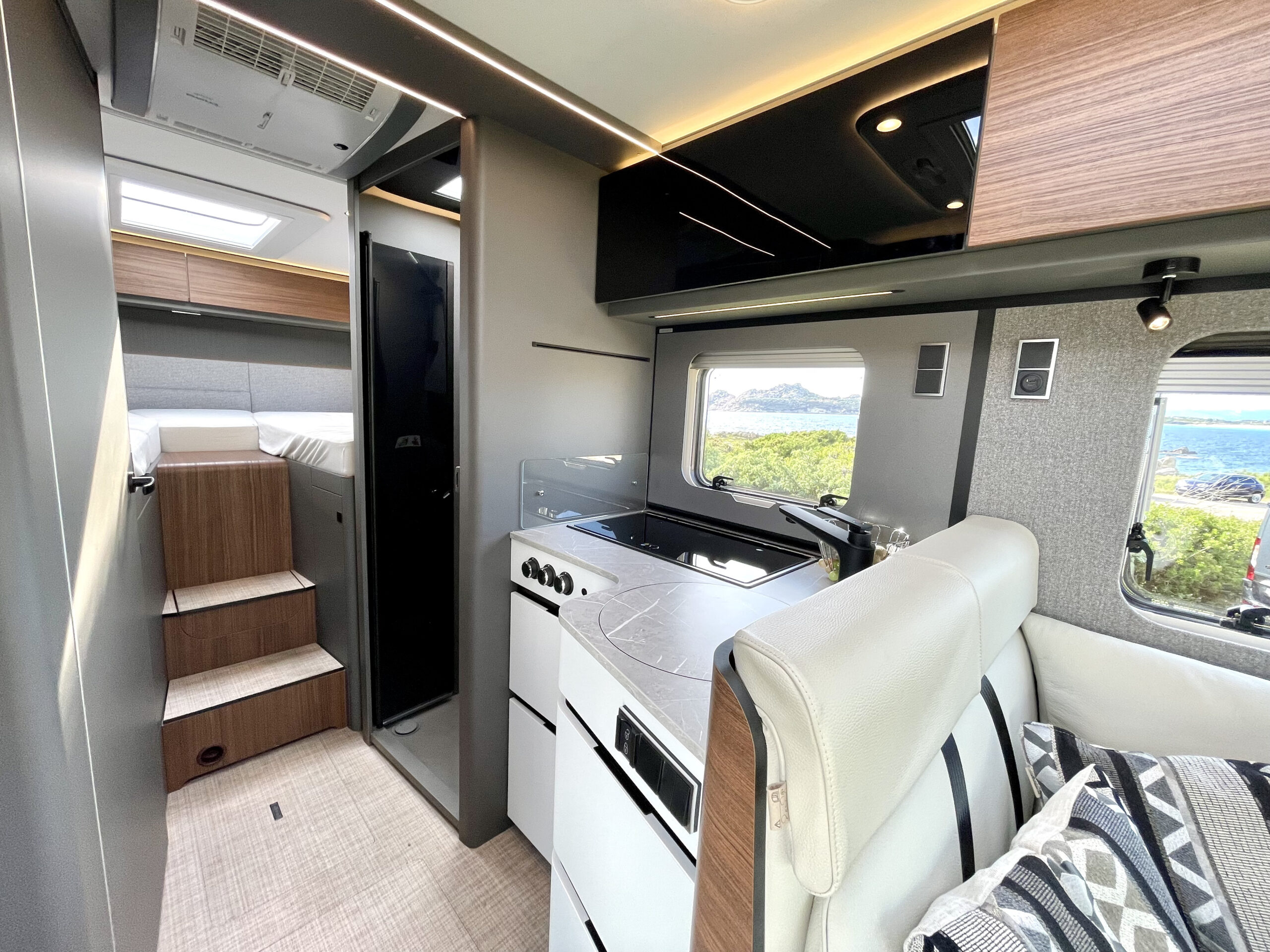 Hymer B-Class ModernComfort T 680 – išskirtinis turistinis kemperis, kuriame susijungia Mercedes-Benz važiuoklės patikimumas ir Hymer prabanga. Automatinė 9G-TRONIC pavarų dėžė, šildomos dvigubos grindys, 150 l švaraus vandens bakas ir modernus 142 l šaldytuvas užtikrina komfortą kelionėse. Penkios miegamos vietos, stoglangis, erdvus salonas su mini virtuve bei dušu leidžia mėgautis laisve be kompromisų. Puikus pasirinkimas tiems, kurie ieško aukščiausios kokybės ir patogumo ištisus metus.