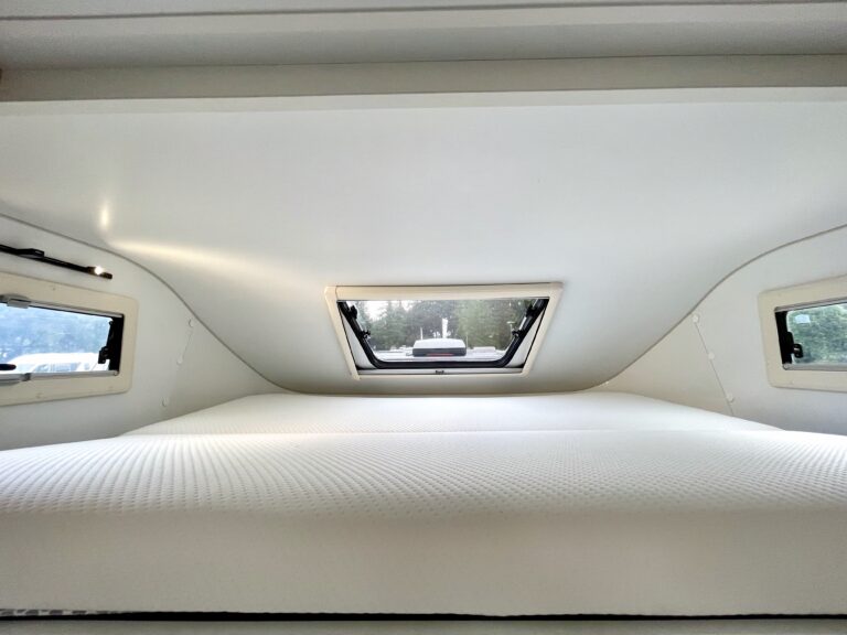 - Электрическая система: светодиодное освещение потолка и багажного отделения, USB-розетки для зарядки, розетки 230 В и 12 В, электрический блок, подготовка проводки для солнечной батареи