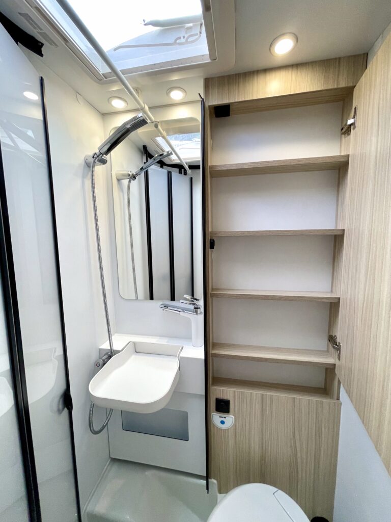 - Ванная комната: химический туалет с поворотным механизмом и пассивной вентиляцией, отдельный смеситель для душа