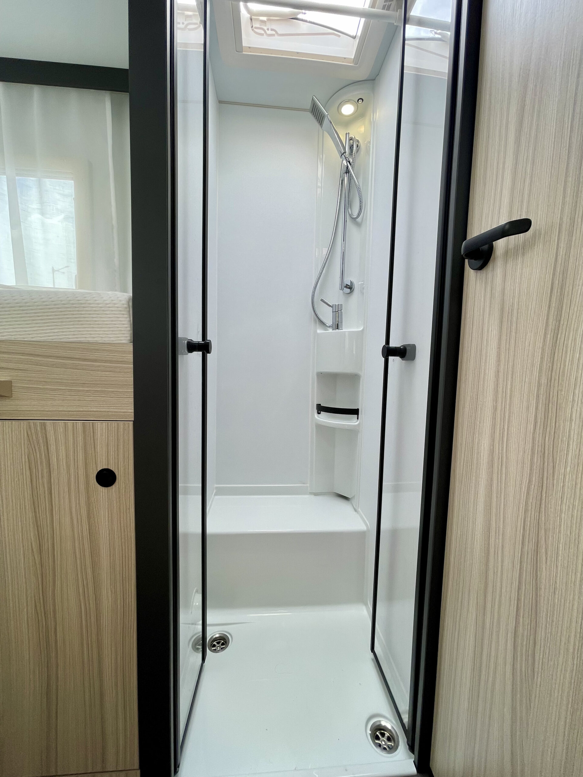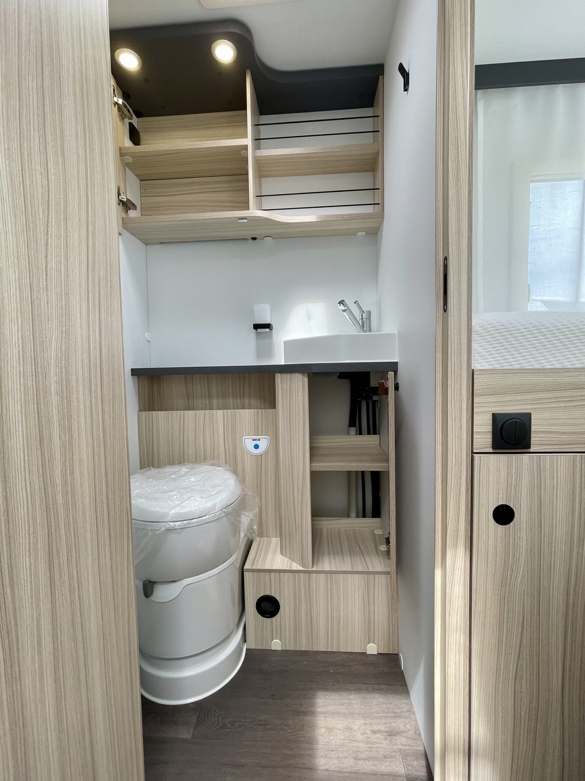 - Ванная комната: химический туалет с поворотным механизмом и пассивной вентиляцией, отдельный смеситель для душа