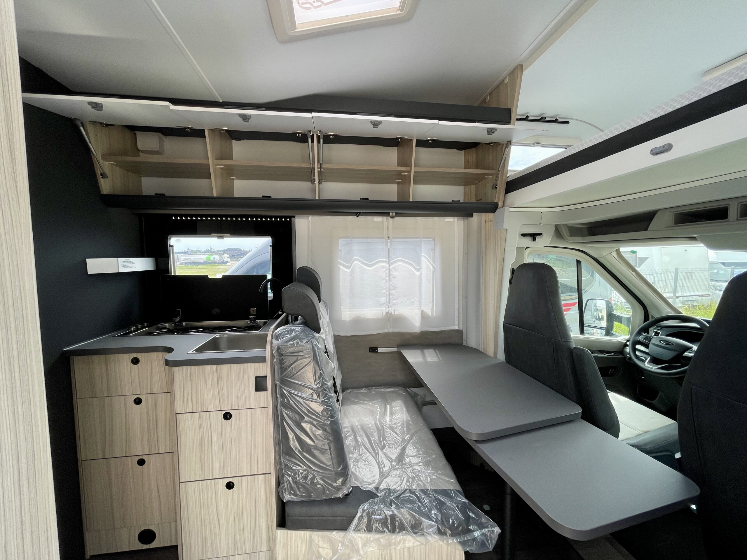 Современный интерьер: Interjeras su NABUCCO CHERRY dekoru ir ALASKA WHITE spintelių durimis sukuria elegantišką ir jaukią aplinką. Virtuvė su 3 degiklių dujine virykle ir 157 litrų šaldytuvu leidžia lengvai gaminti maistą kelyje, o chemine WC ir atskira dušo kabina užtikrina, kad turėsite visus patogumus, reikalingus kelionėje.