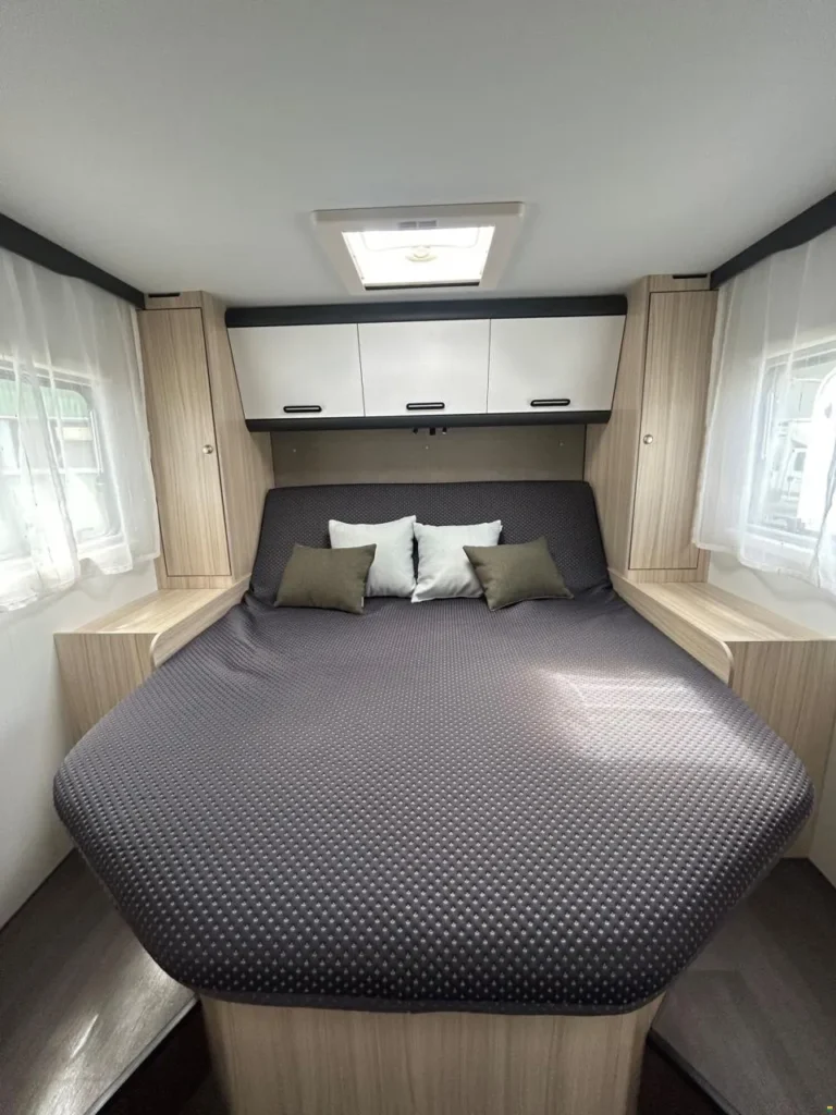 Простор и комфорт: "Sun Living S 72DC" предлагает простор, необходимый Вам во время путешествий. Благодаря четырем удобным сиденьям и четырем спальным местам этот кемперван гарантирует, что всем в поездке будет комфортно. Заднее спальное место размером 195 x 150 см создает уют, а дополнительная кровать спереди (190 x 125 см) гарантирует, что у каждого будет достаточно места для отдыха.