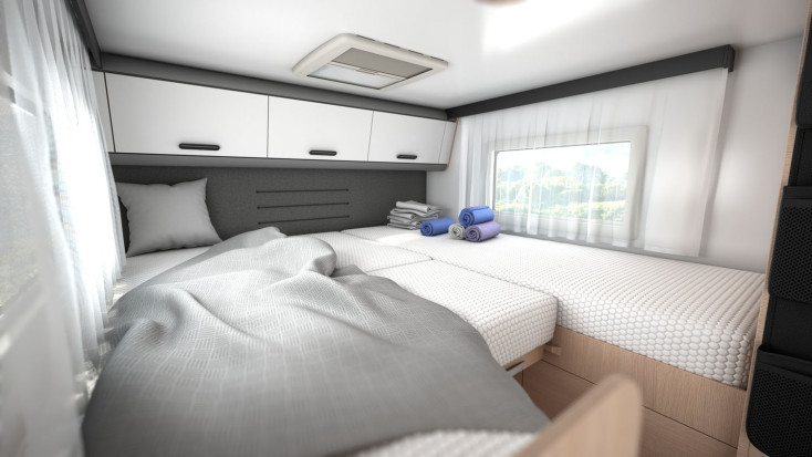 Простор и комфорт: "Sun Living S 75SL" предлагает пять удобных сидений и пять просторных спальных мест, идеально подходящих для семьи или компании друзей. Задняя спальная зона с двумя кроватями (210 x 75 см каждая) и дополнительной кроватью (190 x 60 см) обеспечивает достаточно места для всех участников путешествия. Передняя кровать (190 x 125 см) гарантирует, что каждый будет чувствовать себя комфортно и безопасно.