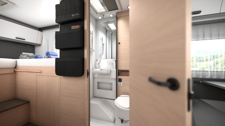 Стильные и функциональные интерьеры: Интерьер украшен элегантными элементами декора NABUCCO CHERRY и ALASKA WHITE, которые создают ощущение роскоши и уюта. Кухня с 3-х конфорочной газовой плитой и вместительным 142-литровым холодильником позволит Вам чувствовать себя как дома, куда бы Вы ни отправились. Химический туалет и отдельный душ со сплошной дверью обеспечат Вас всеми необходимыми удобствами даже в самых отдаленных местах.