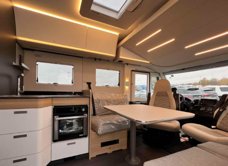 Dieną praleidi tyrinėdamas miestus, kalnus ar pajūrį. Grįžęs į savo mobilų namą, atveri duris ir pasitinki tave supančią jaukią šilumą. „Truma“ arba „Alde“ šildymo sistema užtikrina, kad net vėsesnėse vietovėse tavo kemperis būtų tikras prieglobstis. Minkštos sėdynės, apšviestos šiltų LED lempų, kviečia atsipalaiduoti. Prisijungi savo išmanųjį telefoną prie „Bluetooth®“ garso sistemos ir leidi mėgstamą muziką – tai tavo asmeninis vakaro fonas.