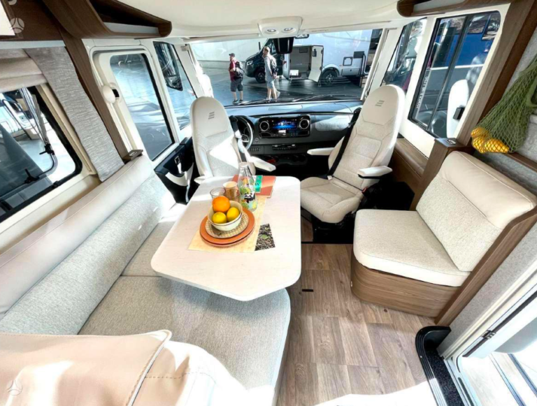 - Сидіння кабіни оббиті тією ж тканиною, що і житлова зона, поворотні, регульовані по висоті і з 2 підлокітниками